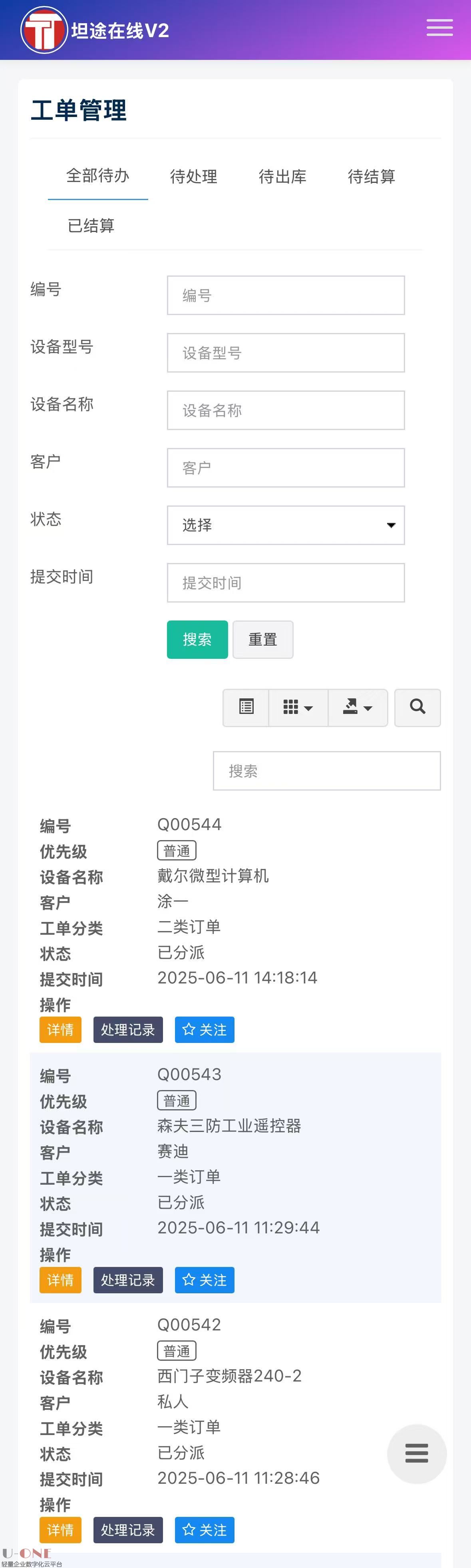 2、优化后台的工单台账功能