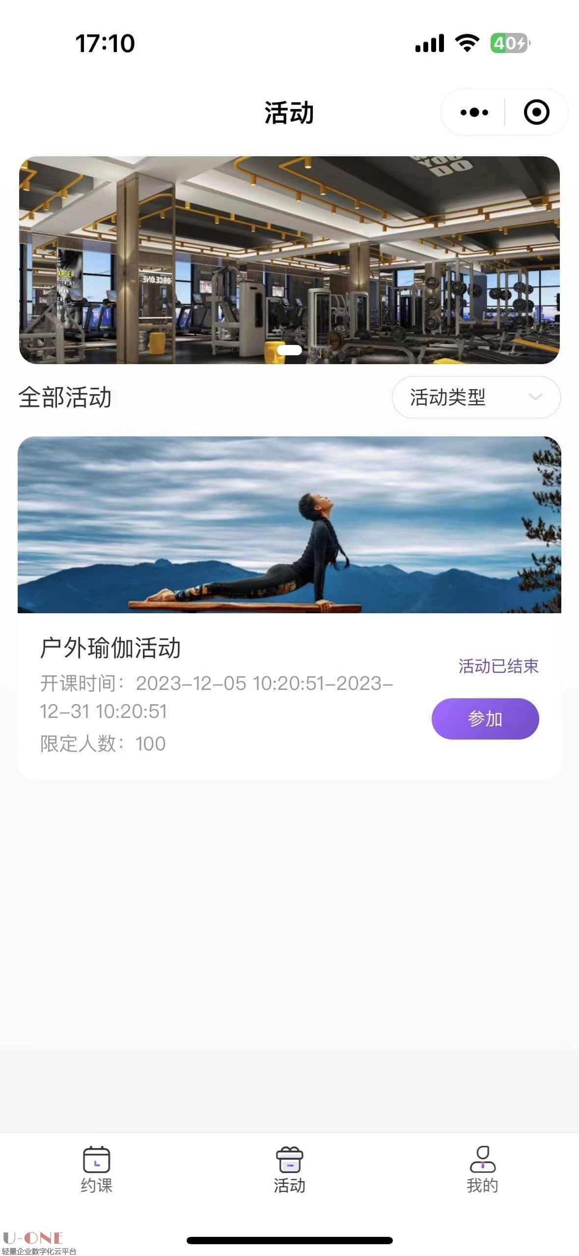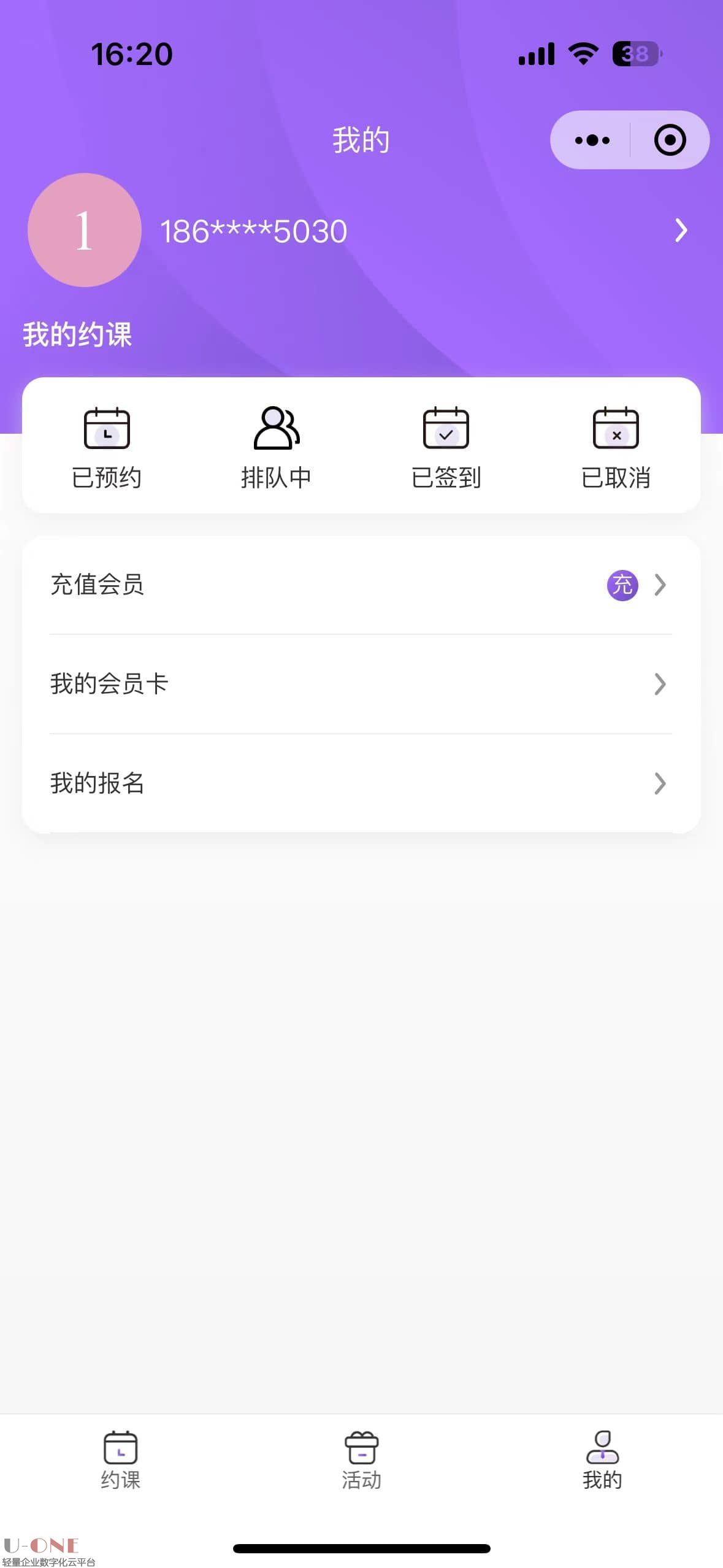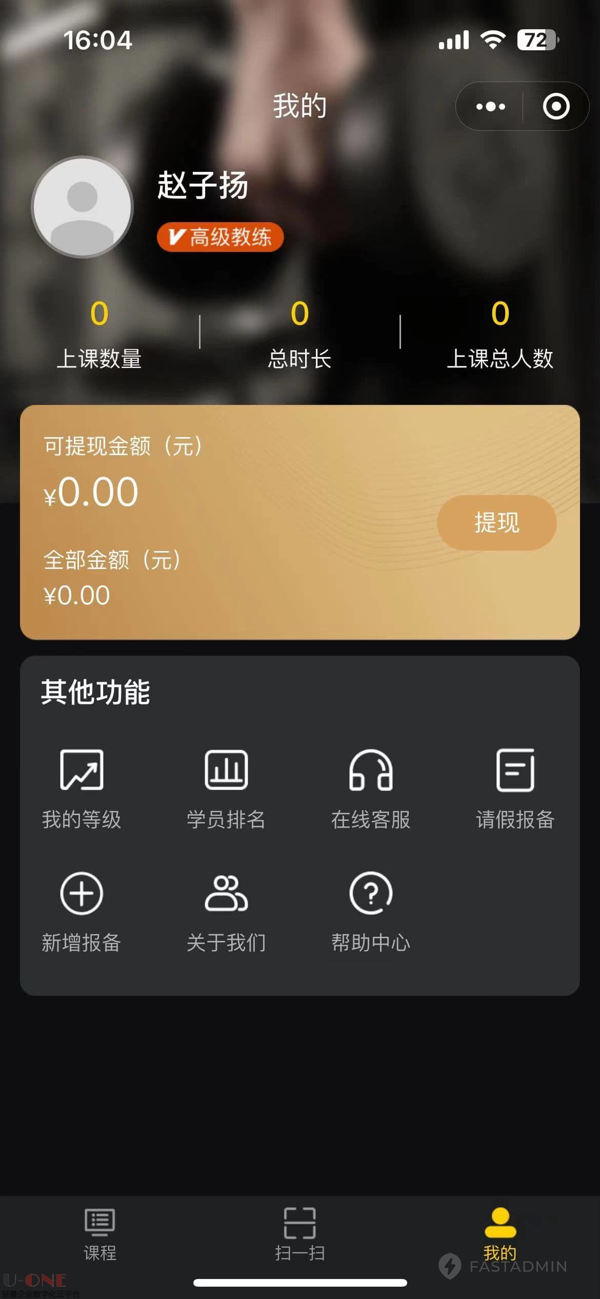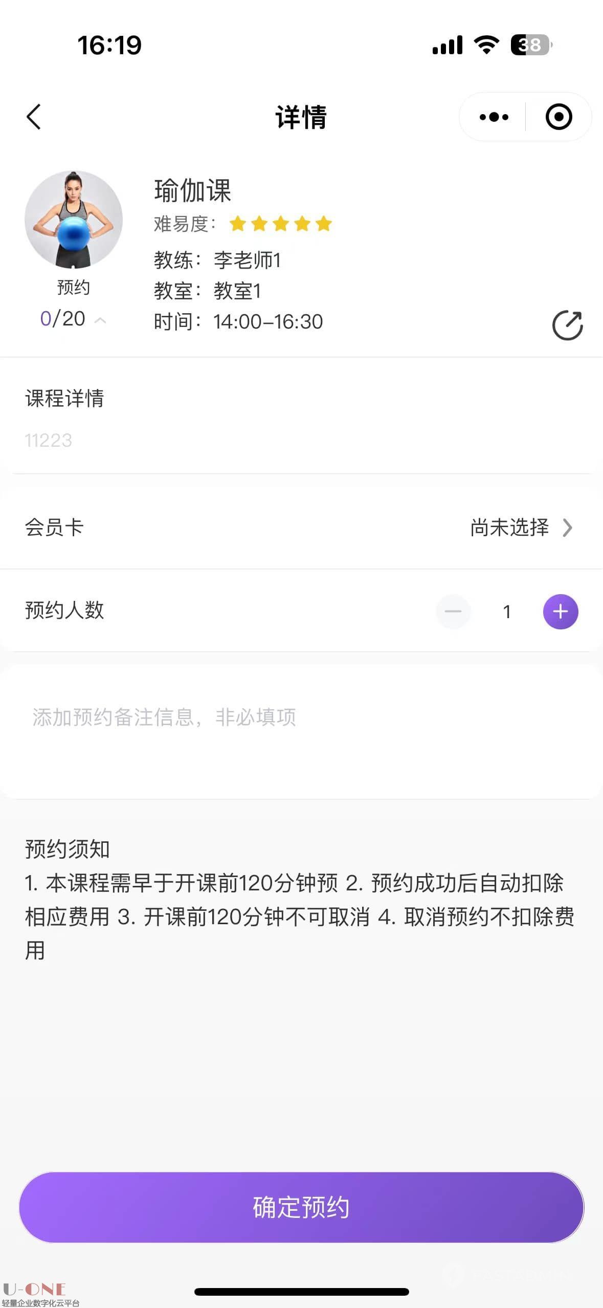 ·课程管理:课表发布、在线预约、课时核销,支持私教 / 团课分类管理。