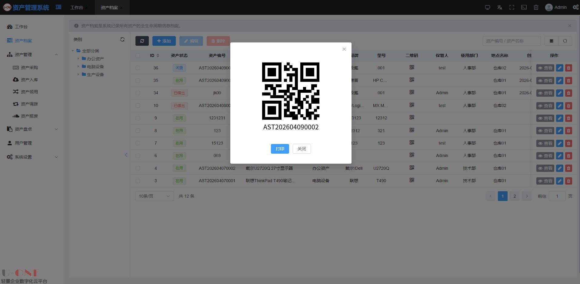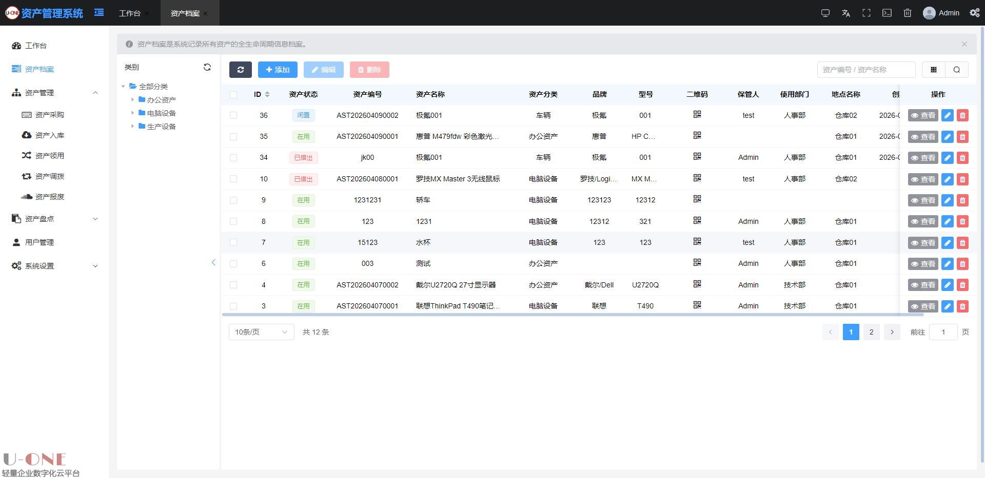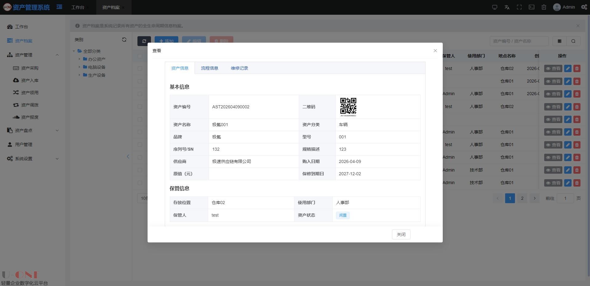 【U-ONE固定资产管理系统】 轻量定制 + 灵活扩展 + 可本地部署